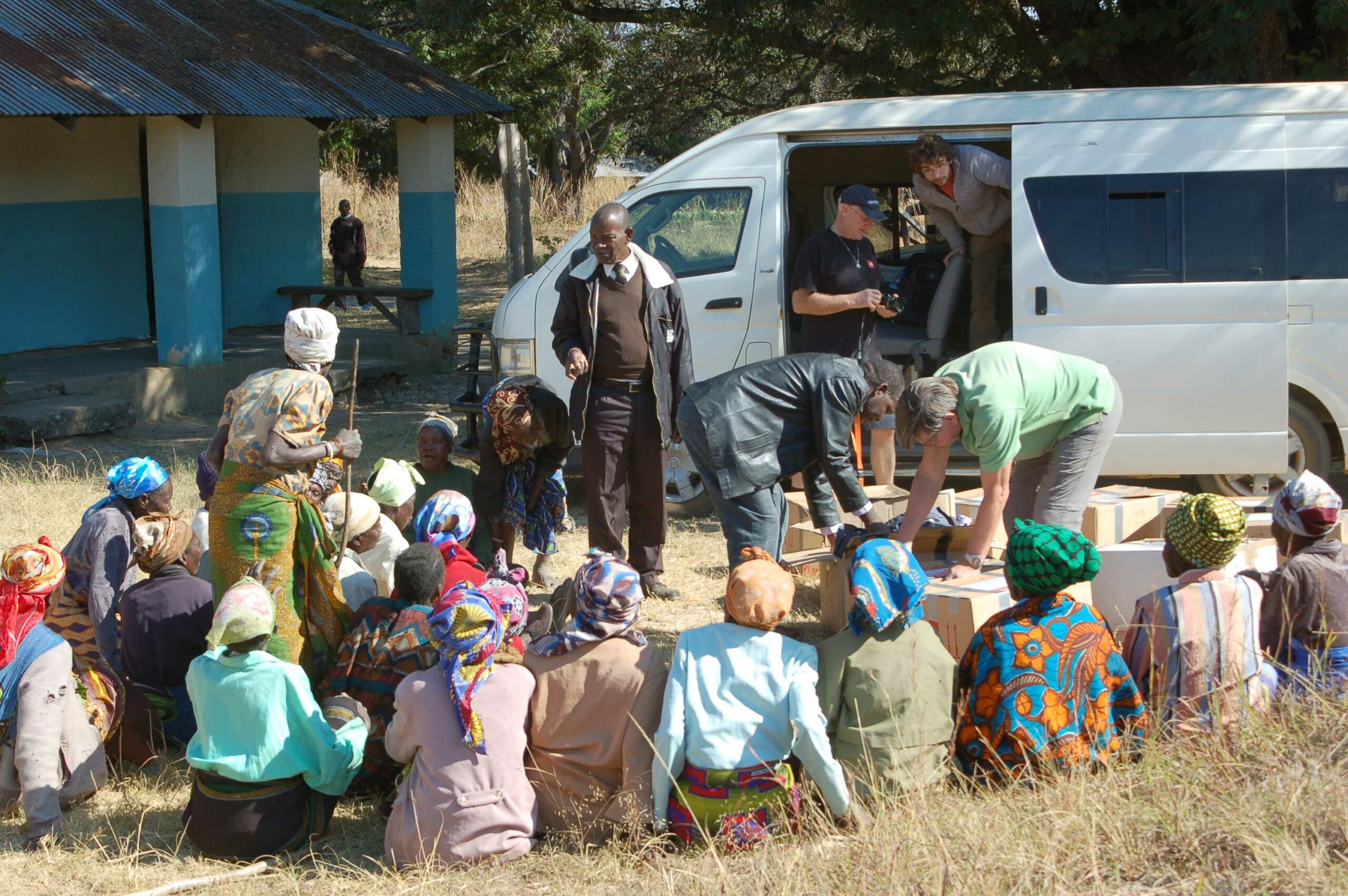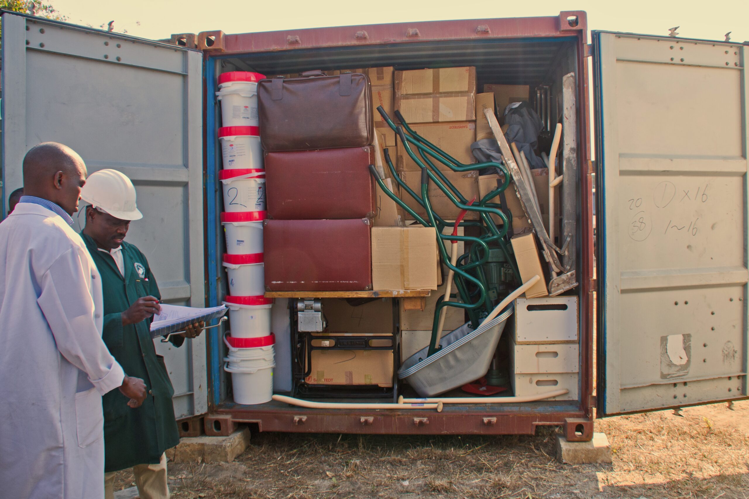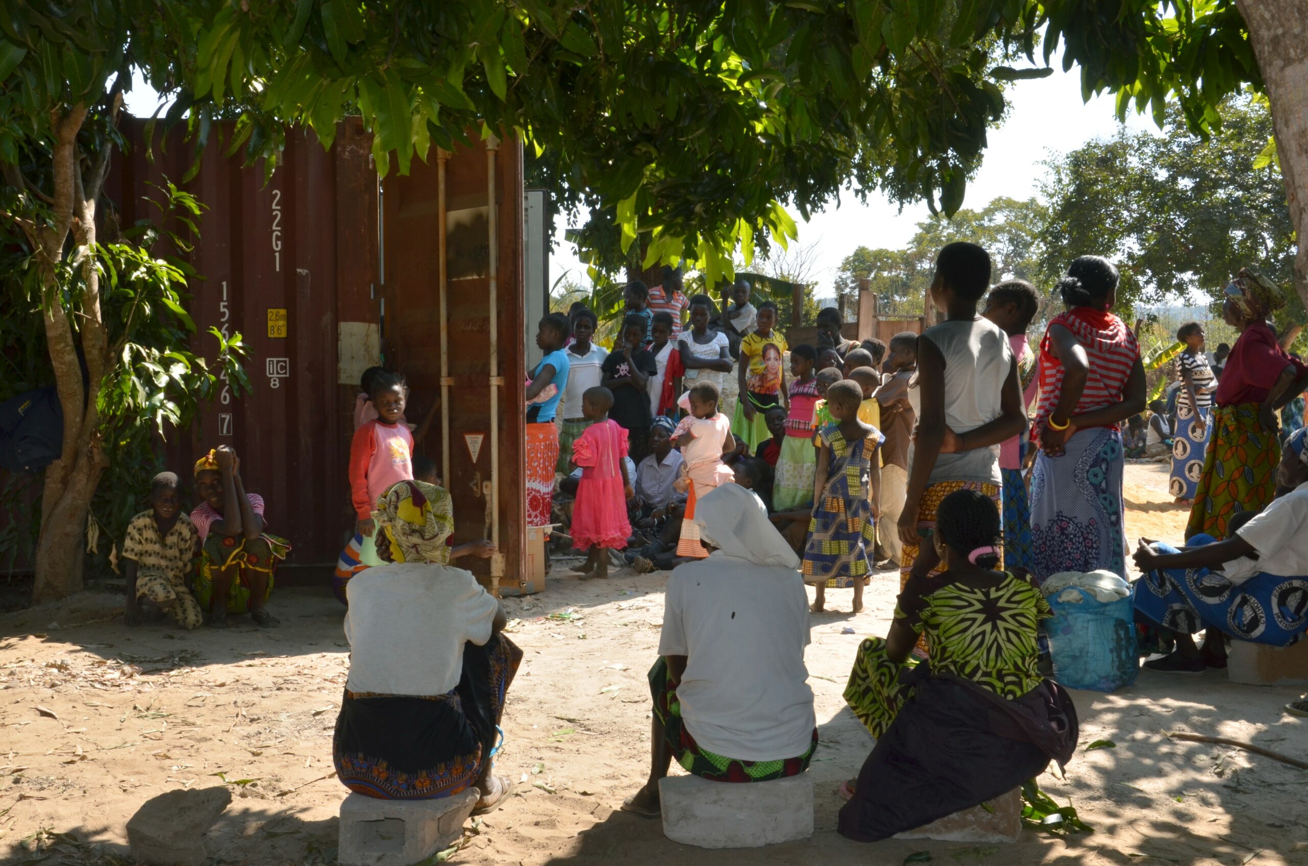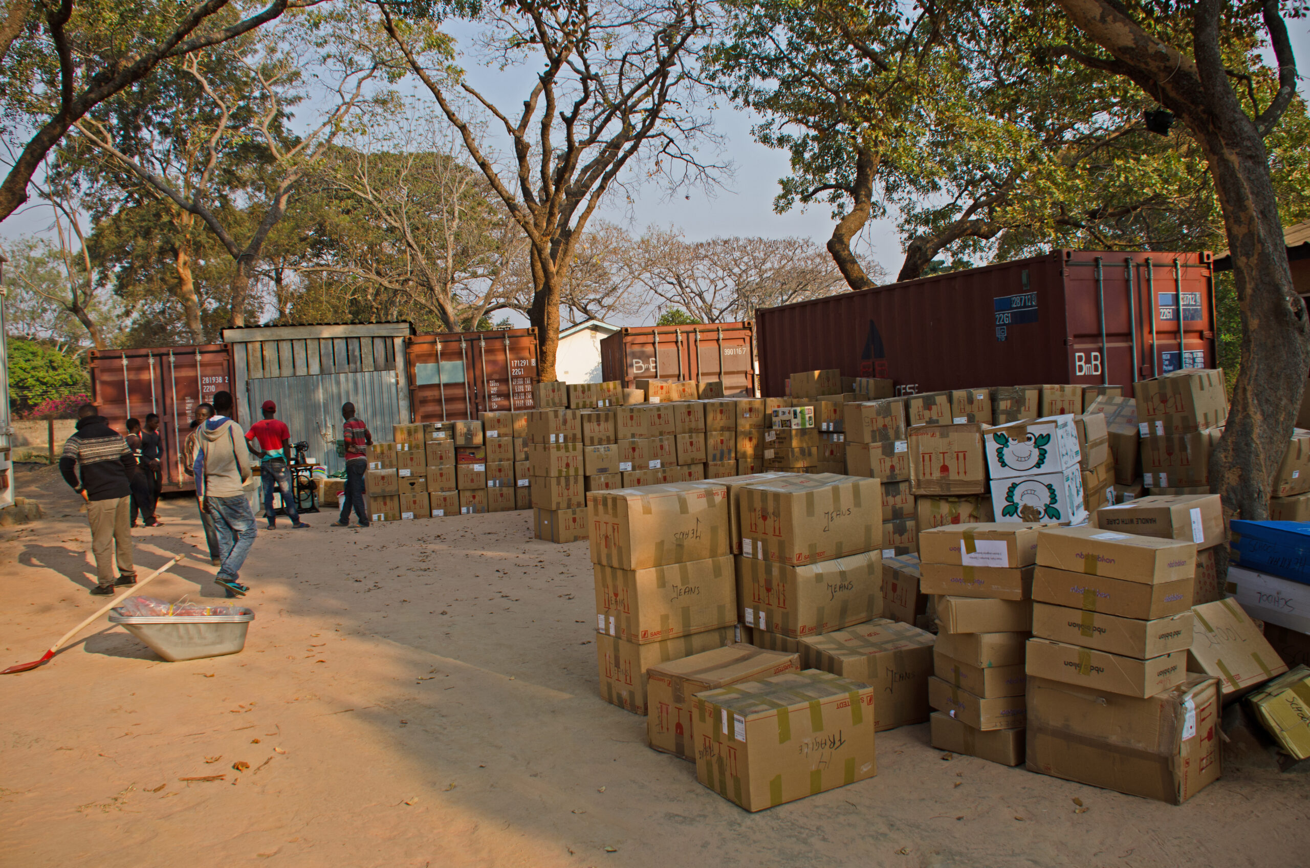 Hier wordt de allerlaatste container van BMB open gemaakt en uitgedeeld.
